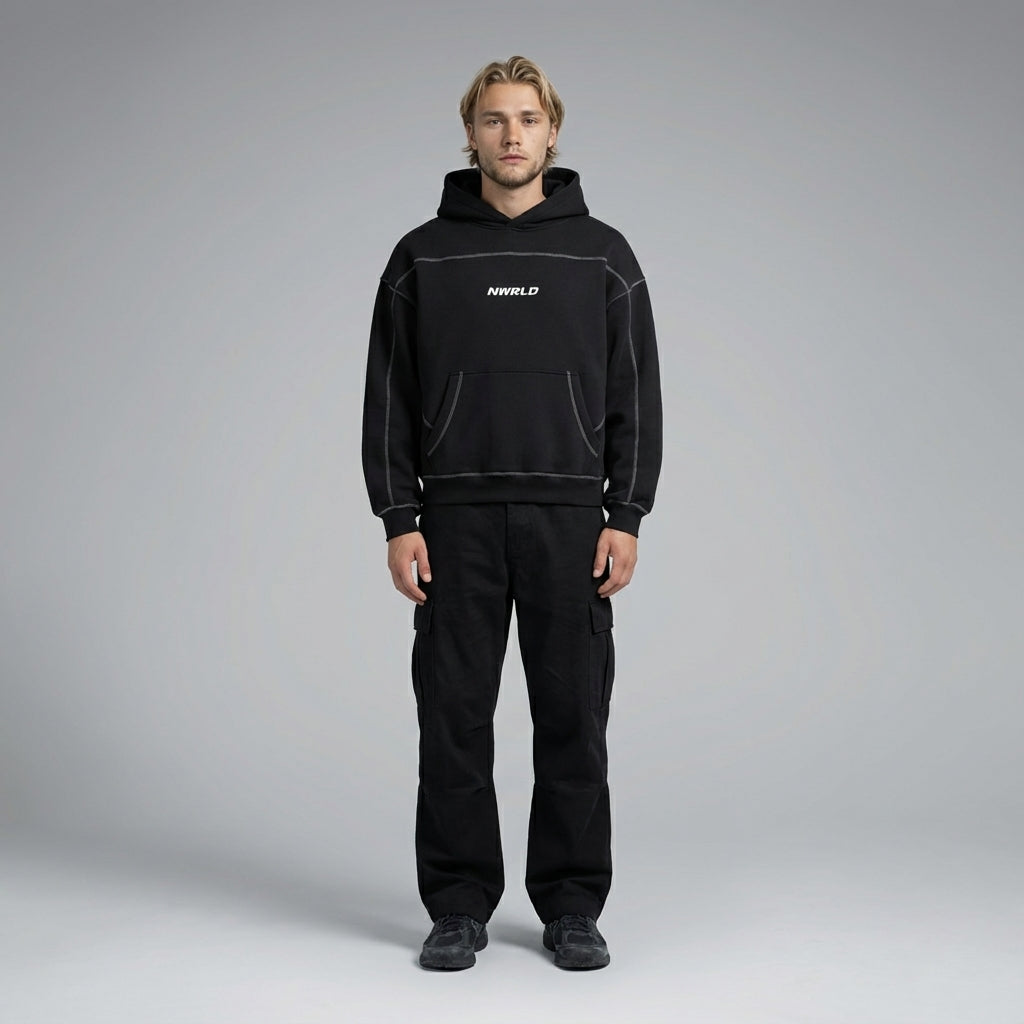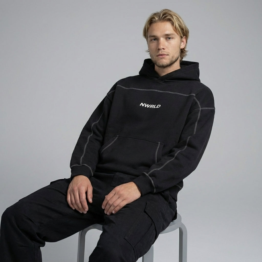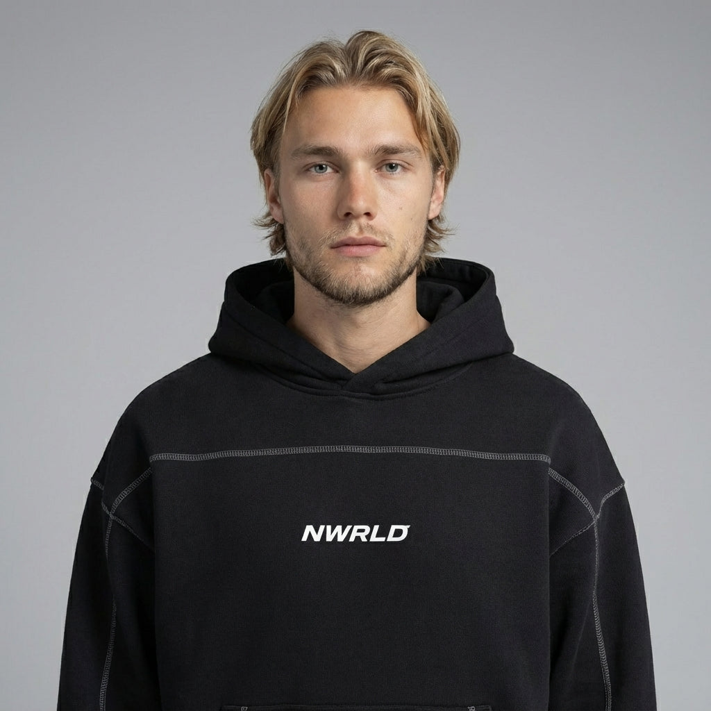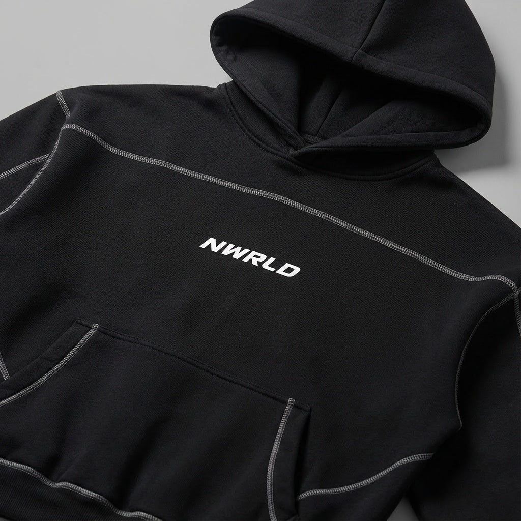 NWRLD 003 | Contrast-Stitched Boxy Fleece Hoodie