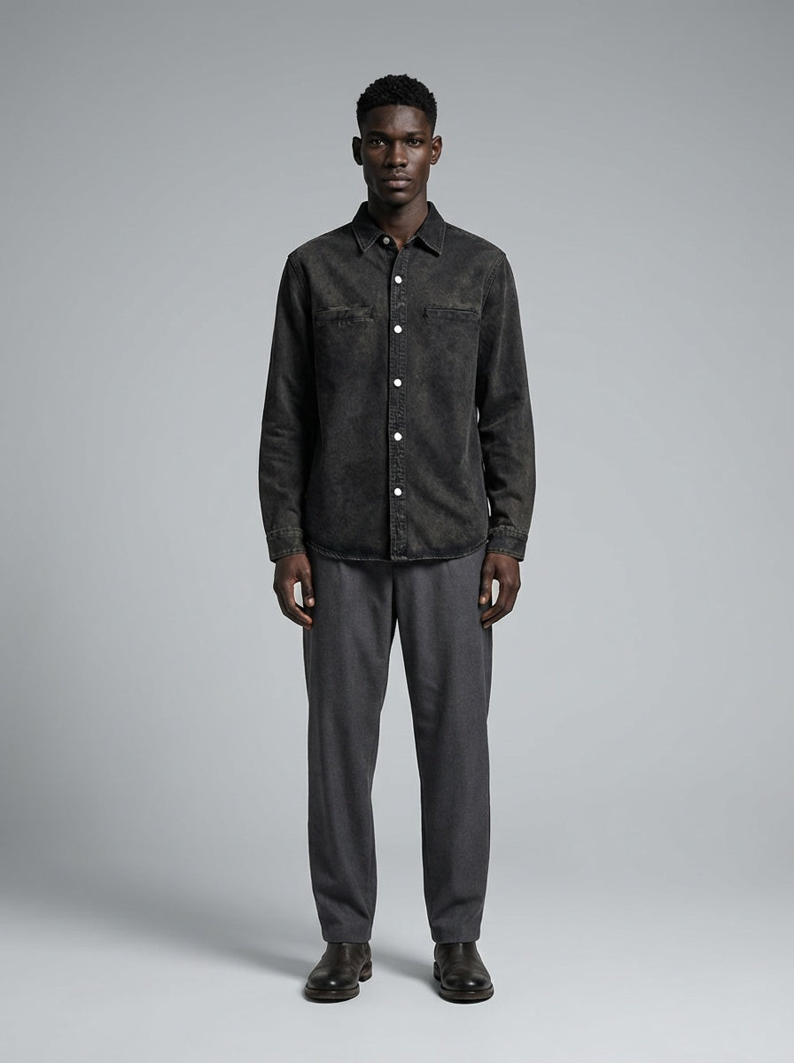 Cut with a clean, structured silhouette and constructed from durable denim, making it suitable as an outer layer across seasons.