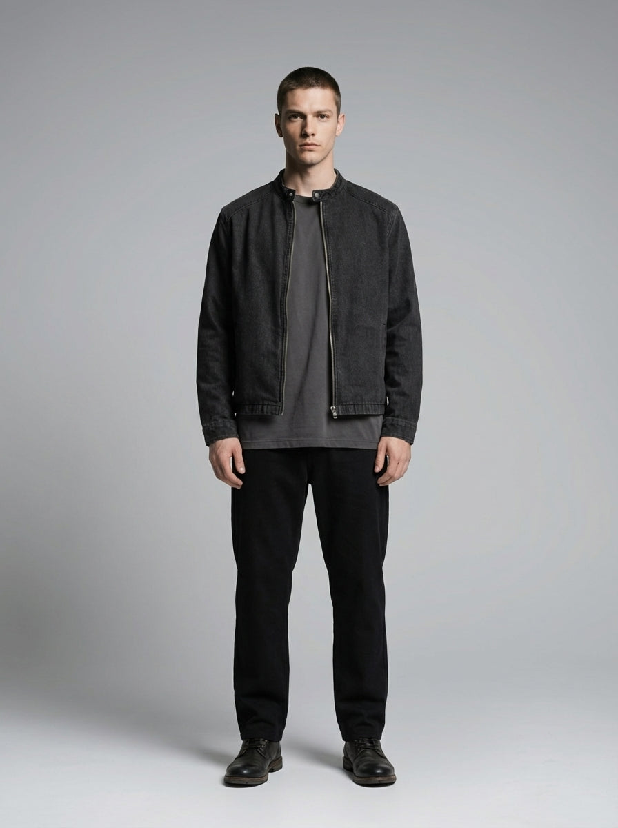 Cut with a clean silhouette and constructed from durable denim, making it suitable for layering across seasons.