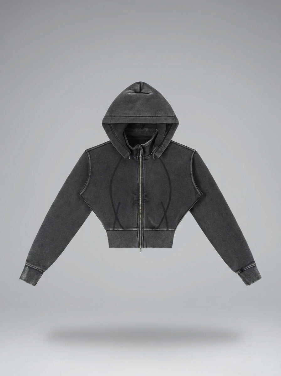 NWRLD 003 / Vintage Washed Cropped Fleece Hoodie