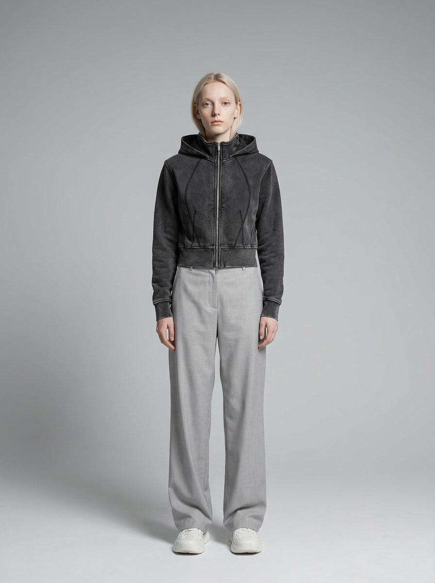 NWRLD 003 / Vintage Washed Cropped Fleece Hoodie delivers refined casualwear through intentional proportioning and fabric treatment. The vintage wash imparts an authentically lived-in aesthetic that resists appearing contrived or overly processed. Strategic cropping creates a modern silhouette that works across diverse body types and styling approaches, from high-waisted pairing to layered compositions. Premium fleece construction maintains softness and insulation properties whilst the washing process enhances fabric character without compromising structural integrity. A considered piece for those who appreciate garments that balance nostalgic appeal with contemporary design sensibility, offering genuine versatility beyond trend cycles.