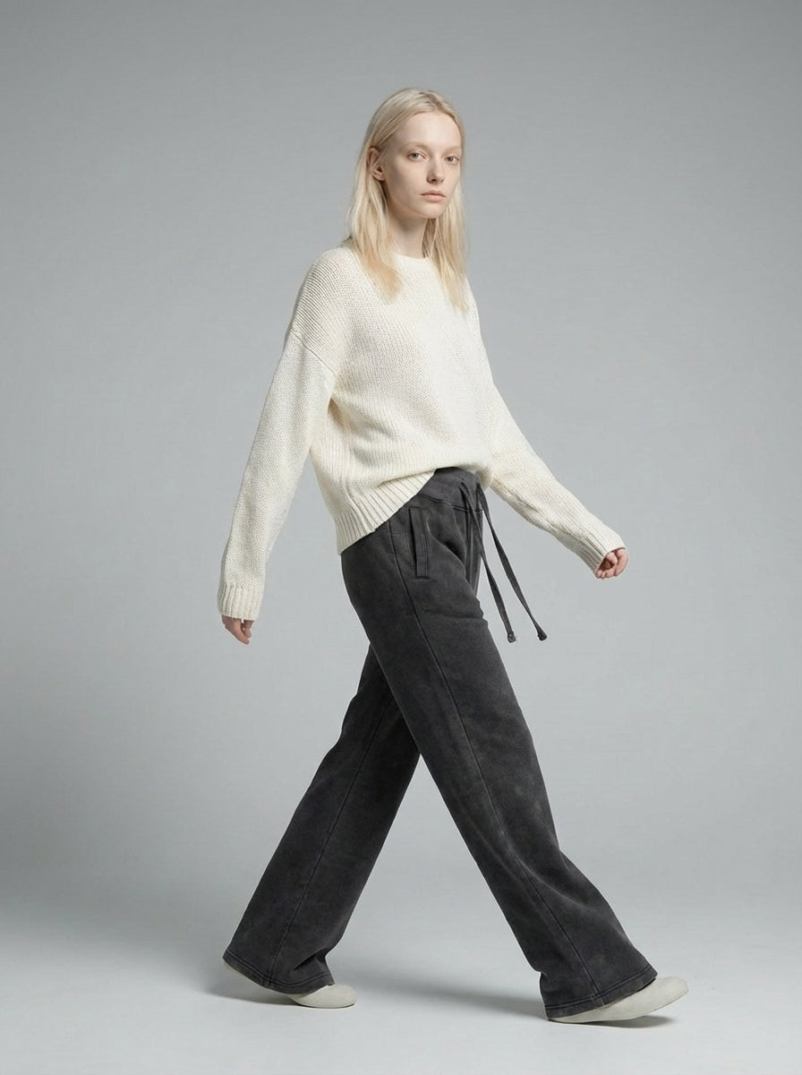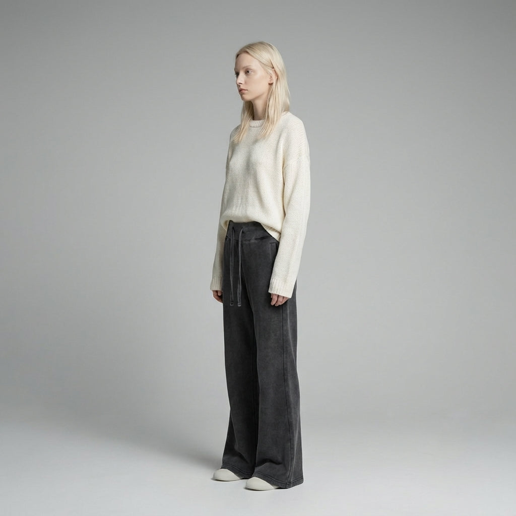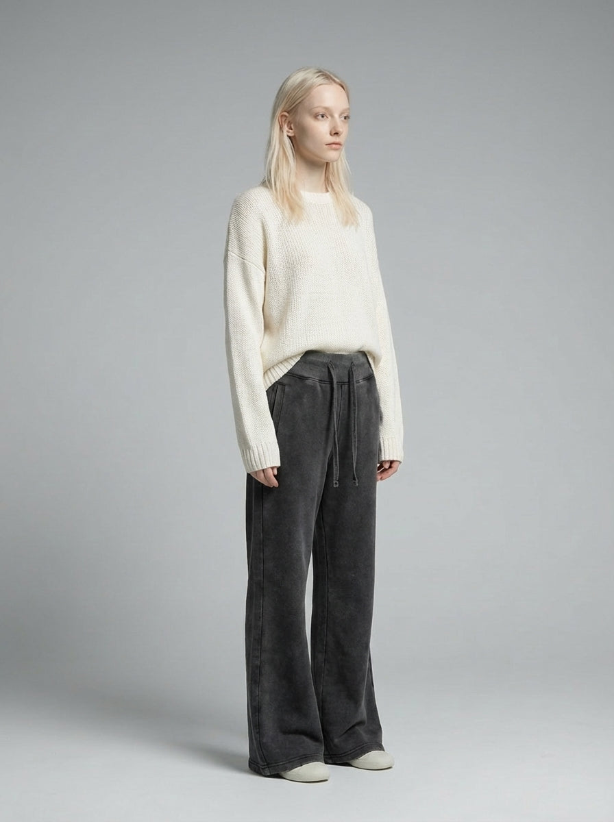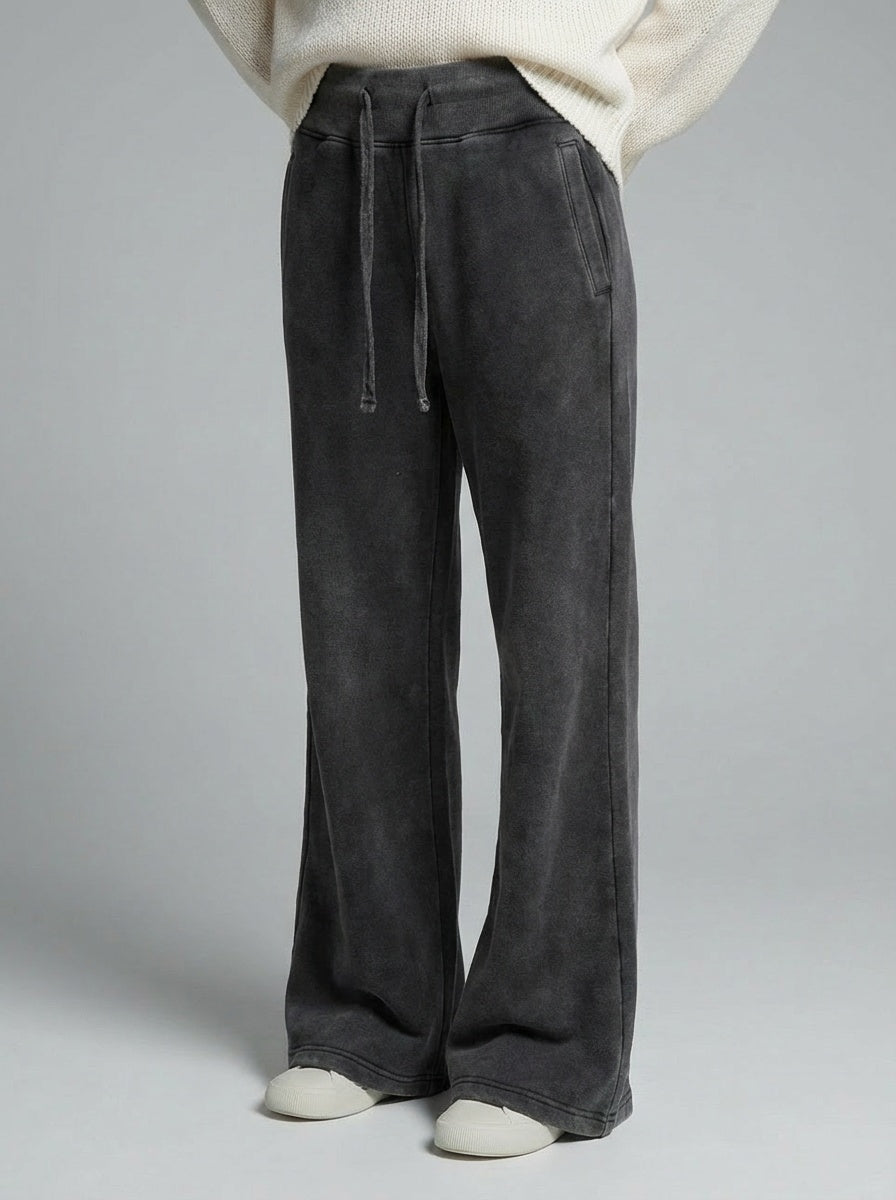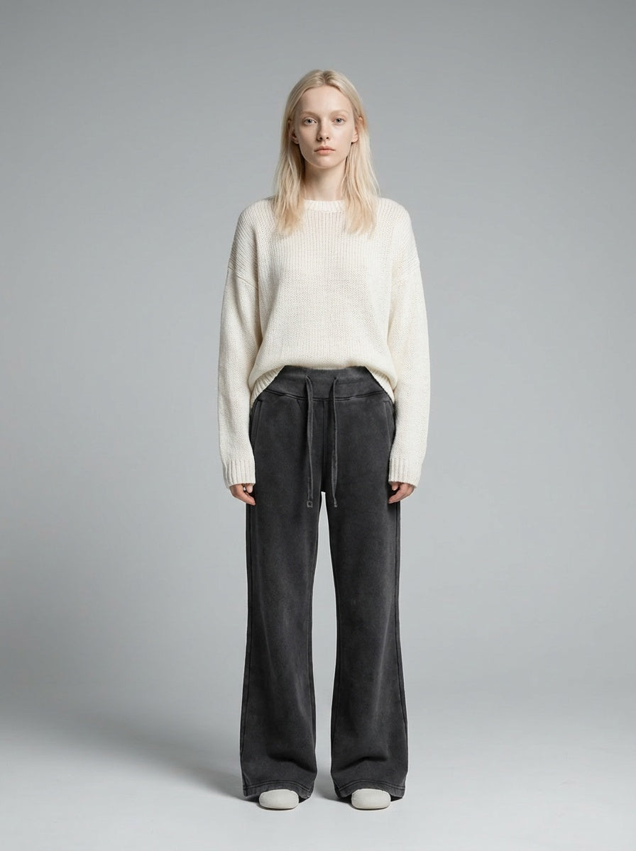 NWRLD 003 / Vintage Washed Flared Fleece Pants reinterpret classic silhouettes through contemporary craftsmanship. The flared leg opening provides visual balance and movement whilst the vintage wash treatment creates authentic character development. Premium fleece construction delivers superior comfort and thermal properties without sacrificing breathability or structural stability. The washed finish enhances fabric softness whilst maintaining durability through repeated laundering. These pants transcend basic loungewear, offering sophisticated proportions suitable for styled casual compositions. An investment piece that demonstrates how thoughtful fabric treatment and considered proportioning elevate everyday essentials into genuinely versatile wardrobe foundations.