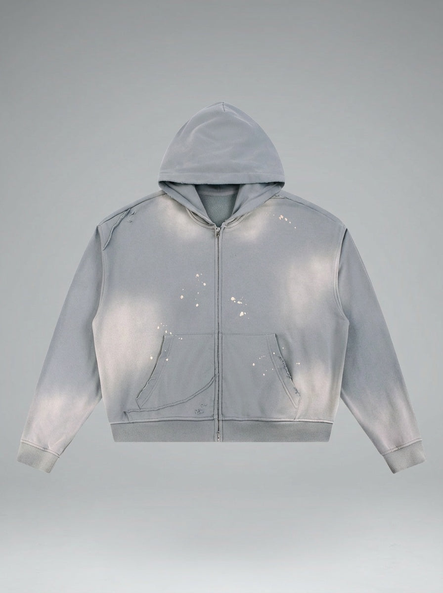 NWRLD 003 | Sun Fade Raw Edge Zip Hoodie
